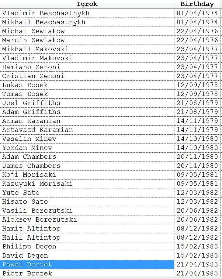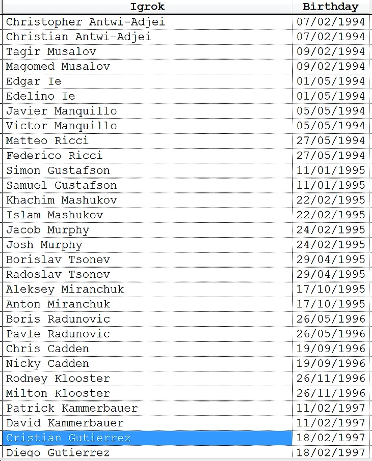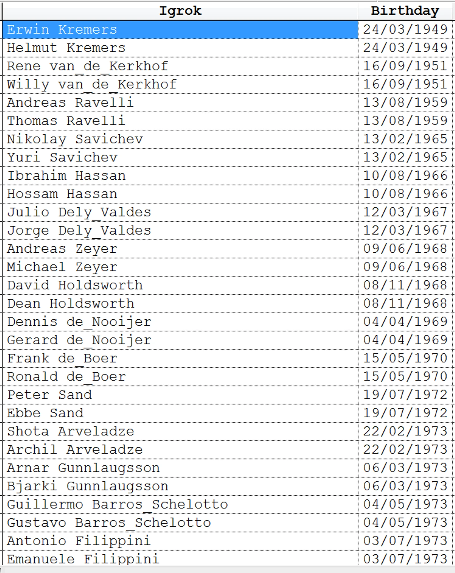 От читателей ждем информацию о новых членах. Я надеюсь, что появится не только twin-club, но trincle-club. Мы уже были на пороге такого клуба в лице эстонских братьев-тройняшек Пури, но футболистов там только двое.