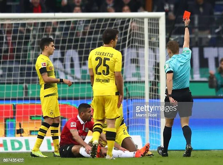 28 октября 2017 года он забил 1й гол для Дортмунда на выезде против Ганновера 96, где он также получил свою 1ую красную карту на 59 -й минуте.