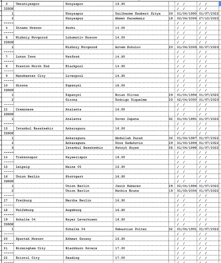 Вашему вниманию предоставляется информация о именинниках в текущих матчах.