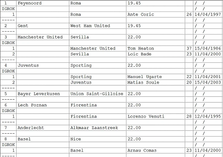 Вашему вниманию предоставляется информация о именинниках в текущих матчах.