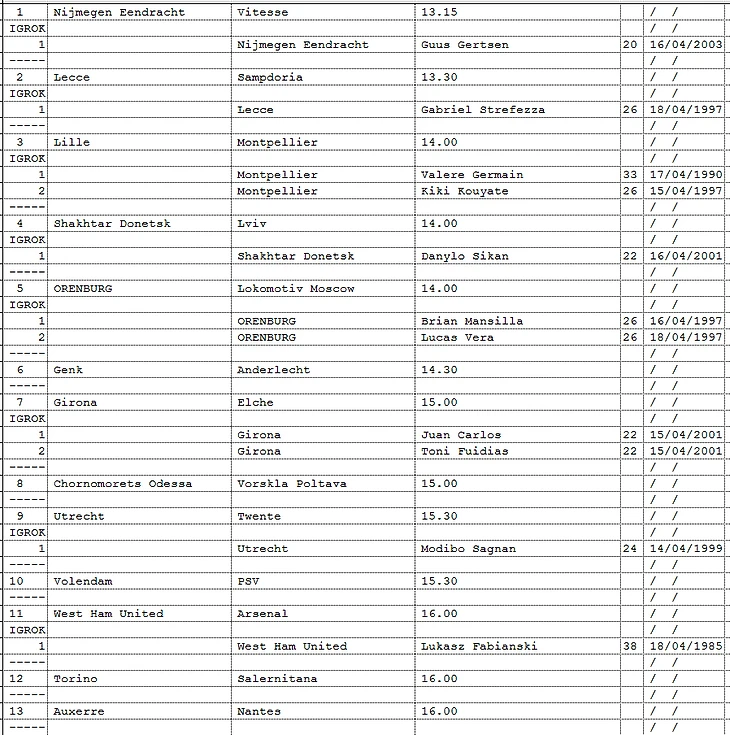Вашему вниманию предоставляется информация о именинниках в текущих матчах.