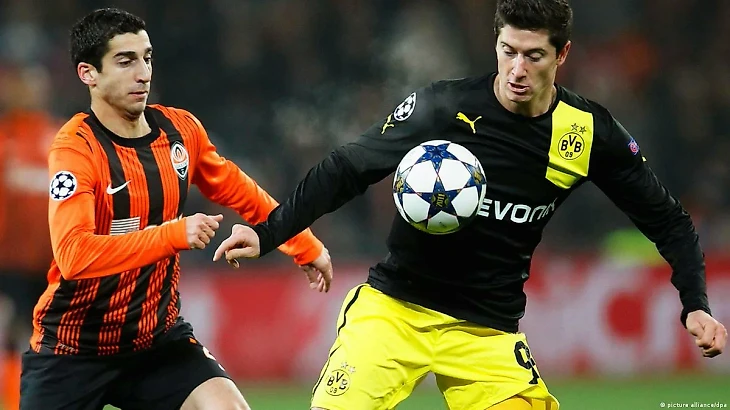 В «Шахтере» Мхитарян установил рекорд по количеству забитых голов в сезоне 2012–13 и был назван футболистом года в лиге. После того, как он также выиграл 3 внутренних дубля, он подписал контракт с клубом Бундеслиги «Боруссия Дортмунд» за рекордную для клуба плату в размере €27,5 млн., что сделало его самым дорогим армянским игроком всех времен.