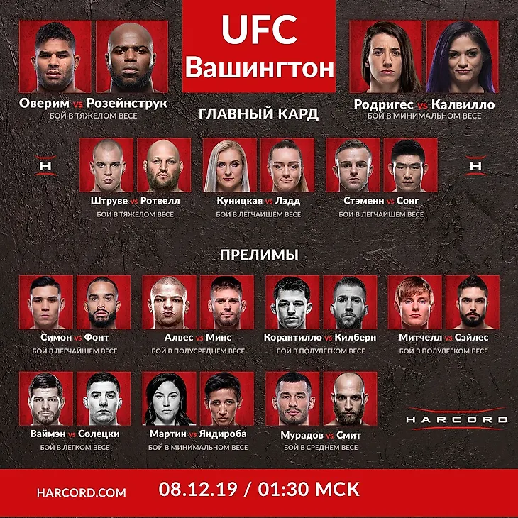 Автор Саркисян Борис ФАЙТКАРД ТУРНИРА UFC ON ESPN 7: ОВЕРИМ ПРОТИВ РОЗЕНСТРУКА