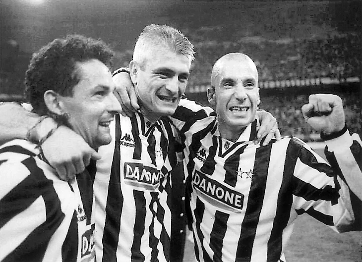 Интересно, что и период девяностых ознаменовал приход Марчелло Липпи в 1994 году. Ювентус 8 лет не знал побед в чемпионате Италии, а конец восьмидесятых и вовсе был позорной пародией на великую команду - шестые и седьмые места, ранние вылеты из Кубка Италии, только Кубок УЕФА стал какой-то отрадой для команды, которая дважды его успела забрать. От команды могучего Траппатони ничего не осталось. В Ювентус приглашают Лучано Моджи и Марчелло Липпи, который сразу летом успел поругаться с Антонио Конте и Джанлукой Виалли. Это не мешает провести отличную летнюю компанию, Моджи привозит тренеру Чиро Феррару, Дидье Дешампа, Паоло Соузу, Алессио Таккинарди. При этом удается удачно заработать на отличных продажах Казираги, Мёллера и Дино Баджо. Тотальное усиление видно сразу - команда уже в 15 туре села на первое место и не слезала с него. Помимо этого клуб победил в Кубке Италии у Пармы, которая сразу же взяла реванш в Кубке УЕФА. Однако приход Липпи ознаменовал полноценную эру доминирования Ювентуса в Европе и Италии: команда трижды взяла чемпионство, победила в Лиге Чемпионов, побывала еще два раза в финале, взяла два раза Кубок Италии, Суперкубок УЕФА, Межконтинентальный кубок, и тот самый никому не нужный Кубок Интертото. Уход Липпи, приезд Анчелотти, игровой упадок Зидана и Конте - совокупность факторов ожидаемо привела к завершению победоносного шествия.
