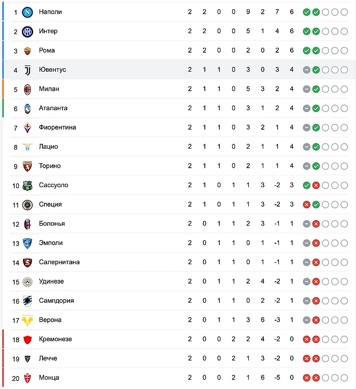 Так же, как в первом туре, сейчас нельзя делать каких-то выводов наперед, поскольку два матча - это слишком мало для демонстрации чего-либо. Объективная оценка может сложиться хотя бы спустя десять игр, чтобы каждый сумел проследить тенденцию развития, застоя, или стагнации командного уровня. Пока же можно порадоваться за ноль в графе пропущенных и погоревать за ноль в графе забитых, а также полном отсутствии командной работы и каких-либо игровых связей. Лично я бы даже в условиях ничьи был бы куда больше рад видеть в составе отчаянную и талантливую молодежь в лице Миретти, Ровеллы и Фаджоли, чем в очередной раз мучаться, взирая на бьющуюся в свой игровой потолок посредственность от Рабьо. Следующий поединок с Ромой пройдет дома, как и последующий со Специей. Римляне вместе с нами потеряли двух ключевых игроков Вейналдума и Дзаньоло из-за травм, а новичок Паоло Дибала и вовсе никак пока не может войти в игру, мечась по всей ширине поля в поисках подходящей позиции. Так что матч определенно будет занимательным в плане готовности команд к сезону. Но Ювентус просто обязан побеждать, поскольку победа - это единственное, что имеет значение.