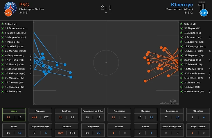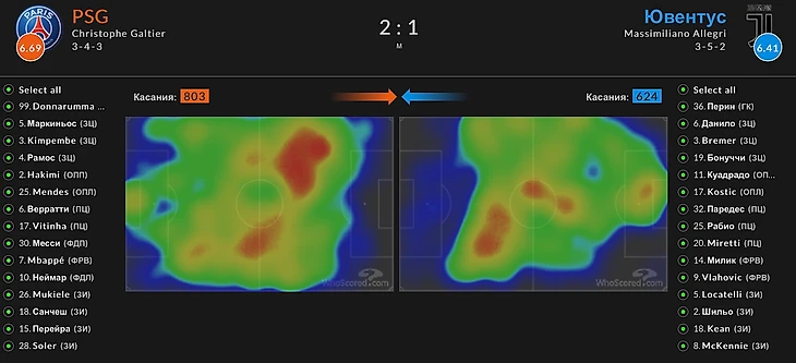 Занимательно, что в плане атаки ПСЖ создал ровно столько же, сколько и Ювентус. Визуально казалось, что парижане атакуют куда больше, однако статистика нам демонстрируют, что в этом компоненте клубы были равны. Разница была в остроте и реализации: ПСЖ словно хищник действовал наверняка, упуская верные возможности увеличить счет, а Ювентус на последнем этапе построения атаки наоборот фальшивил и мазал.