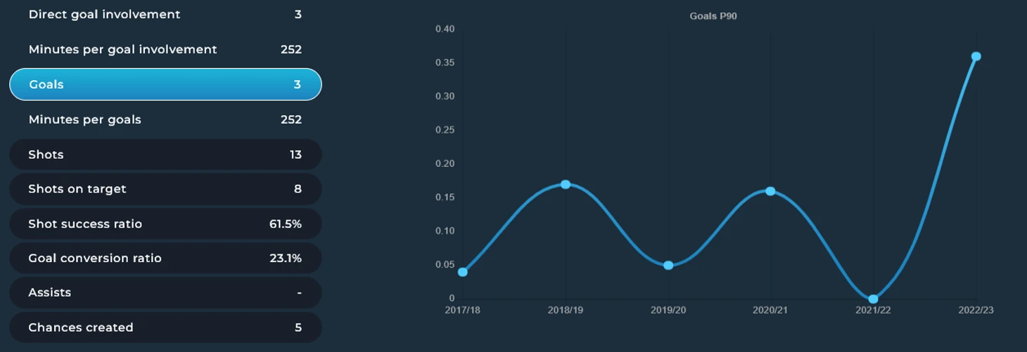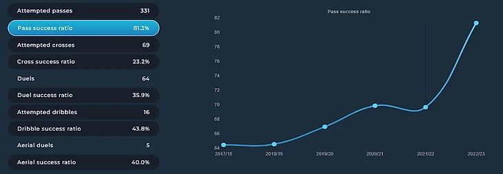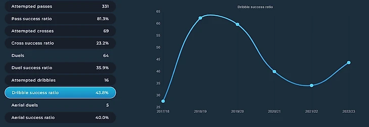 При этом эффективность кроссов ввиду неудачного сентября просела, равно как и дриблинг в сравнении со своими лучшими сезонами. Но прогресс наметился.