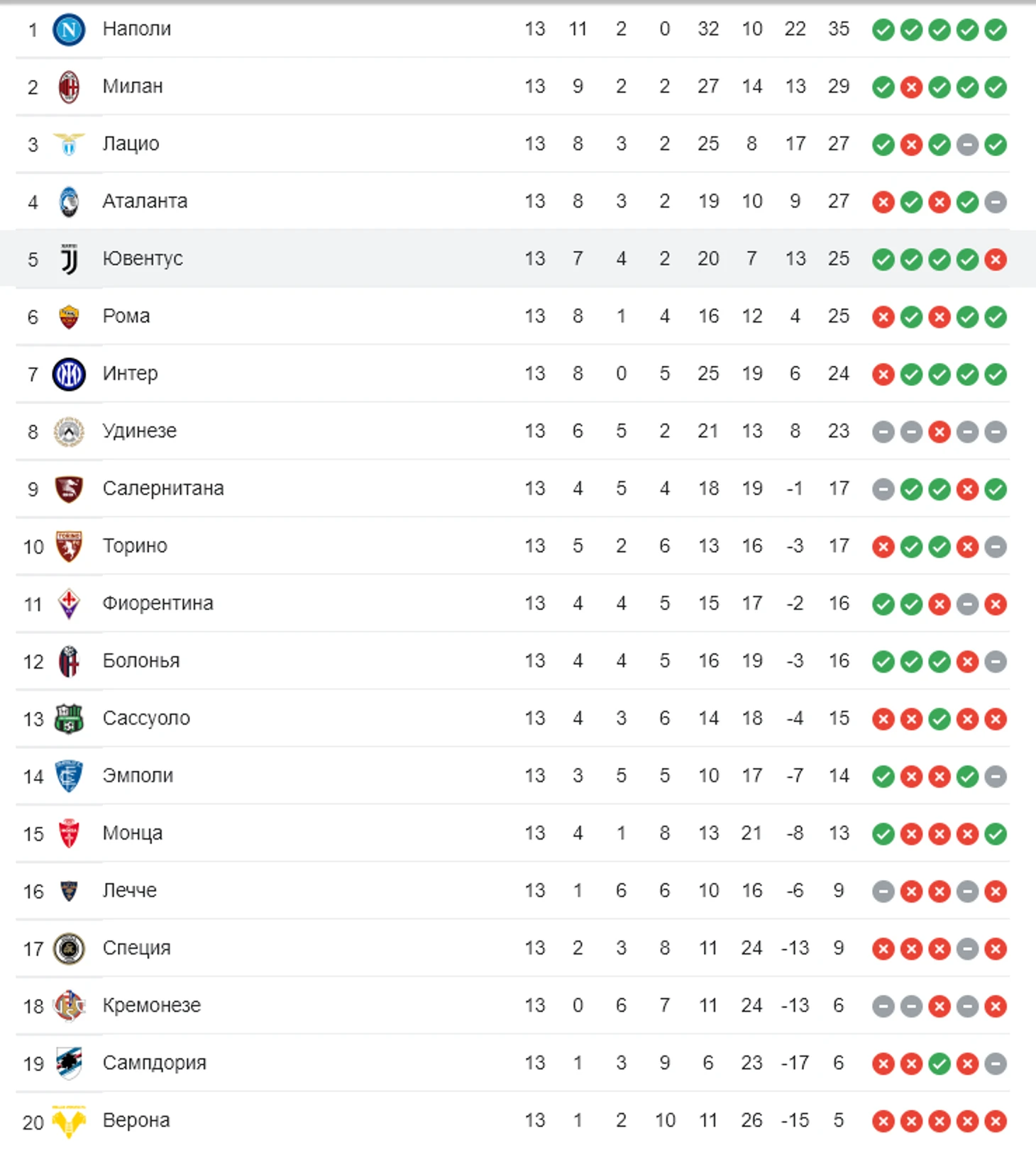 Верона проиграла восемь матчей подряд, набрала 5 очков в 13 турах и занимает последнее место. Ювентус набрал ход и вот уже четыре тура подряд побеждает всухую, поднявшись на пятую строчку Серии А, отстав от второго места всего на четыре балла.