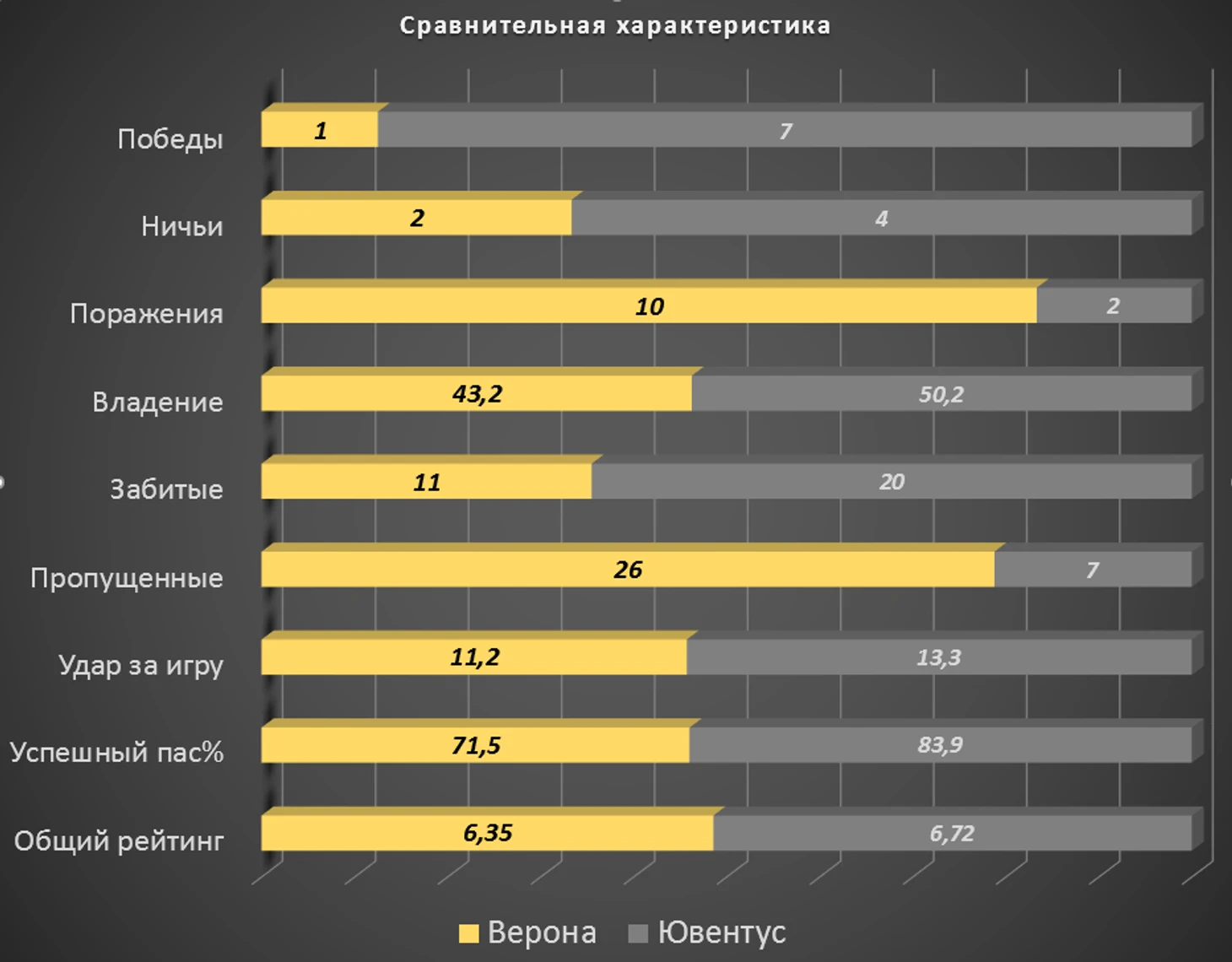 Здесь, к сожалению, все чересчур однобоко и последовательно - Ювентус сильнее и на голову превосходит веронцев.