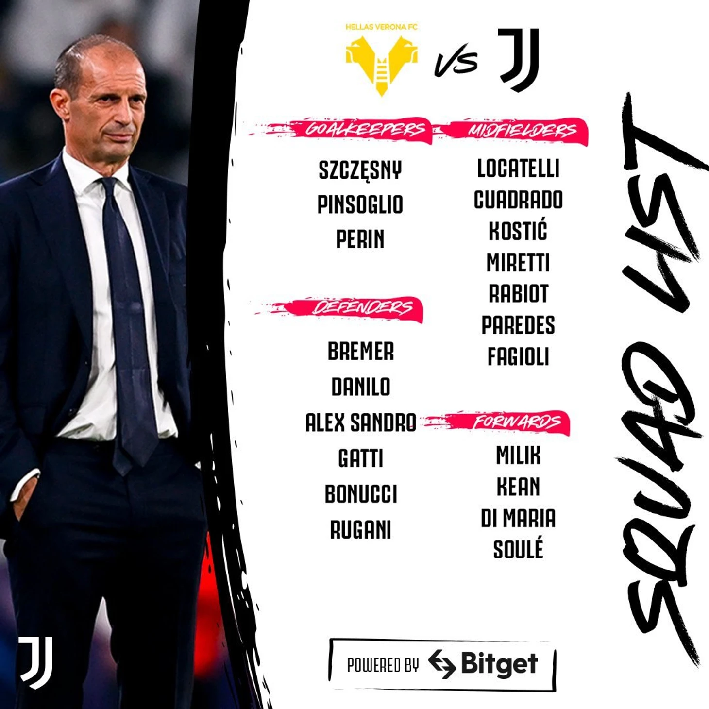 Фаджоли купается в лучах славы после двух голов в двух играх, о Миретти начинают немного забывать, даже не взирая на награду лучшему молодому футболисту Италии. Фабио не очень уютно чувствует себя на позиции под нападающим и чаще ошибается. Также чувствуется, насколько Миретти выключается из эпизодов, не успевая отрабатывать в прессинге и в атаке одновременно. На игру с Вероной Фабио может присесть на лавку, его заменит Кин, а место Фаджоли в составе теперь у него не вырвать. Кьеза отдохнет после двух сыгранных подряд матчей, Илинг-Джуниор продолжает восстанавливаться.