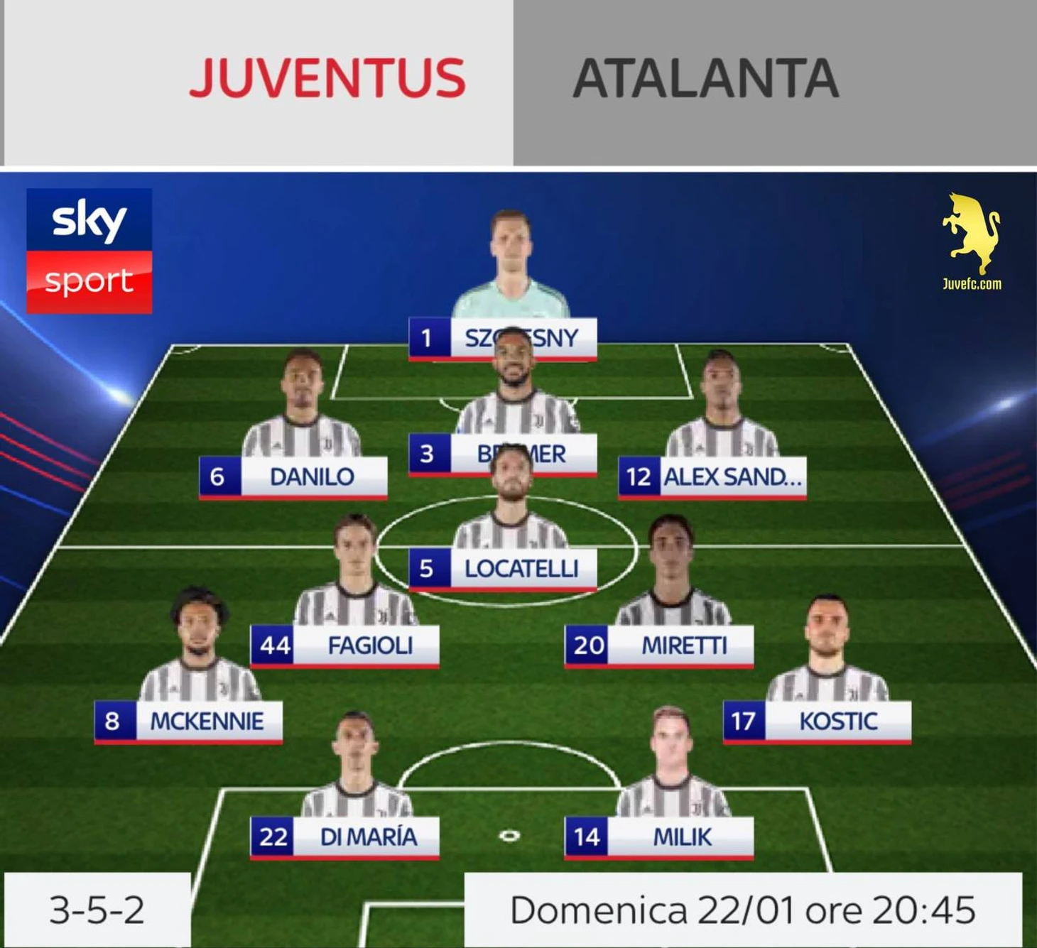 У Ювентуса пока никаких сюрпризов в составе. Есть споры насчет нападающего в старте, но в любом случае и Кин, и Милик действуют в схожем ключе и равноценно полезны в старте. Рабьо пока испытывает мышечную усталость и максимум сможет выйти на замену минут на десять. Погба и Влахович тренируются в общей группе, но вряд ли мы их увидим в этом туре.