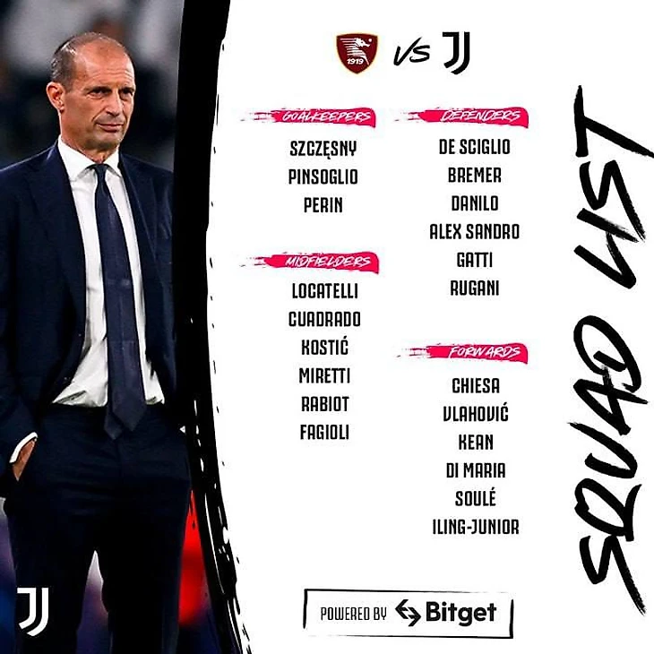 На пресс-конференции Аллегри подтвердил, что на матче не будет Бонуччи, Паредеса, Погба и Кайо Жорже, плюс травмированный Аркадиуш Милик. Все остальные готовы выйти на поле. Идеальное время для наигрывания связки Влахович - Кьеза, которая была эффективна в Фиорентине. Ди Мария возможно вновь выйдет на замену, как ранее в Кубке Италии против Лацио - вместо Федерико Кьезы. В остальном - почти без изменений: бразильское трио в обороне, Фаджоли и Рабьо перед Локателли, Влахович - в атаке.