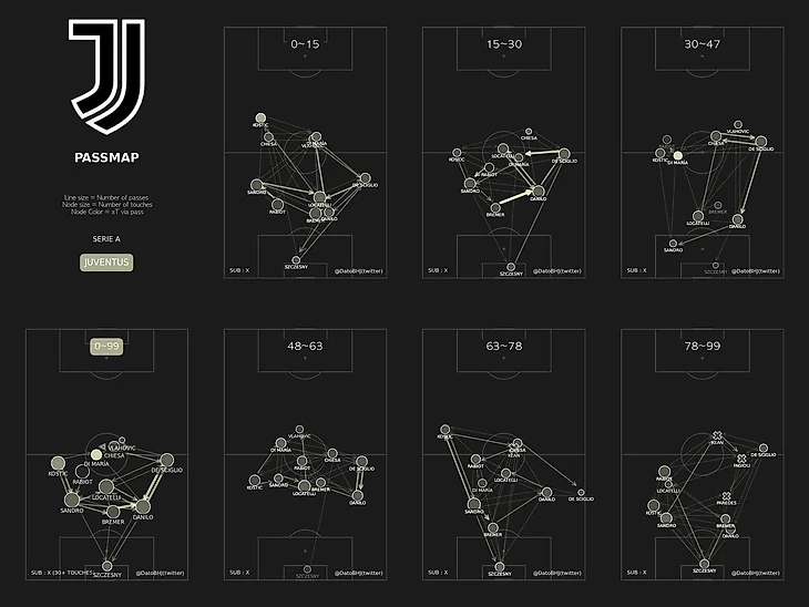 Обратим внимание на резкое снижение активности со стороны Ювентуса во втором тайме. Тому поспособствовал забитый Адриеном Рабьо гол, после чего туринцы ожидаемо отошли назад и полностью отдали инициативу сопернику, сделав ставку на контрпрессинг и контратаки. Затея могла бы считаться оправданной, засчитай арбитр гол Влаховича во втором тайме и попади хоть раз Мойзе Кин в ворота после трех выходов один на один. Но этого не случилось и Ювентус мог упустить победу на последних минутах, если бы еще раз не вмешался ВАР.