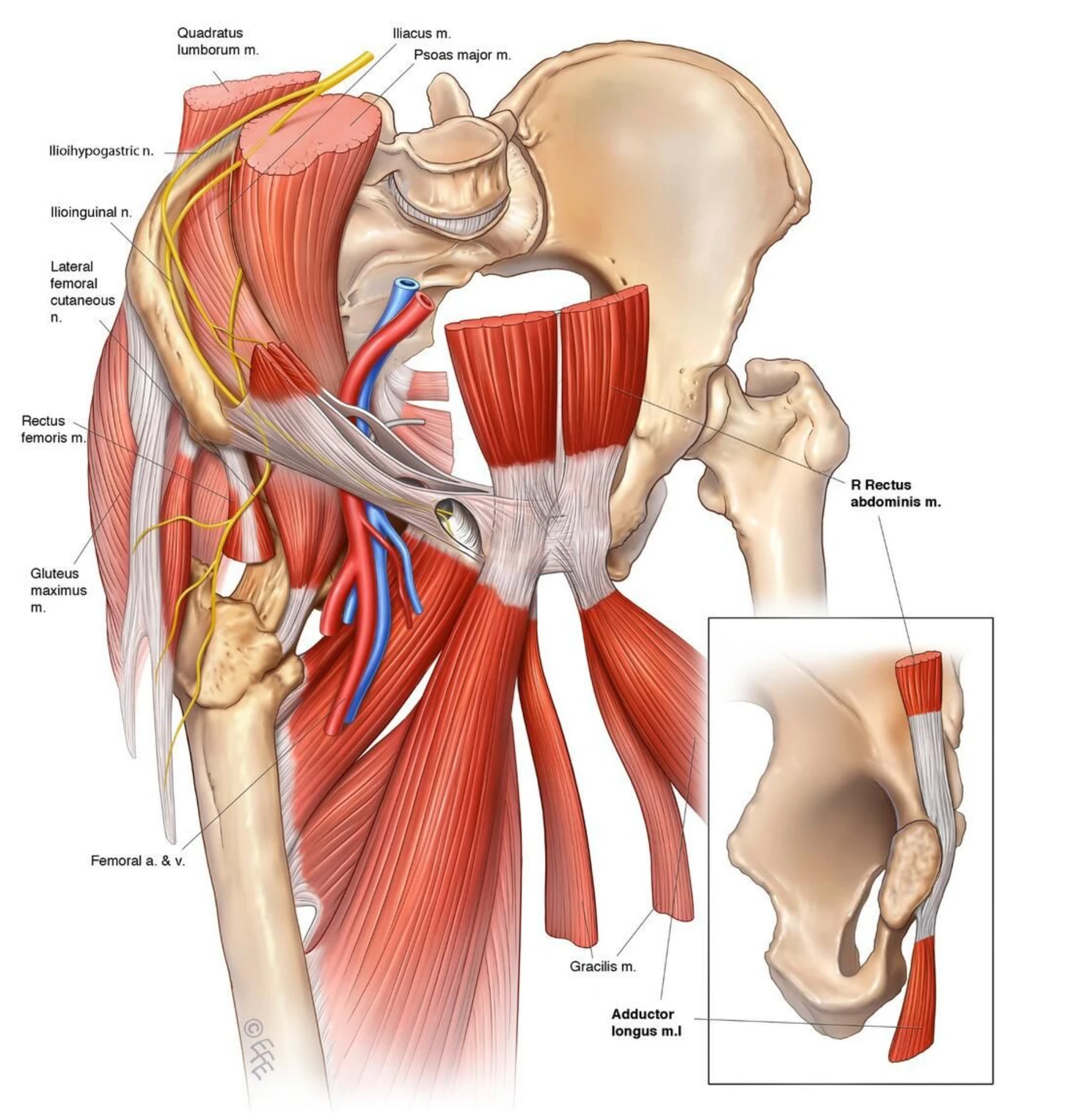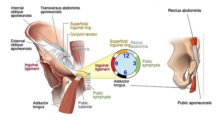 Пубалгия – это хроническое повреждение паха. У спортсменов с данной патологией имеется дисбаланс между аддукторами бедра и мышцами брюшного пресса в области лобковой кости, что приводит к ослаблению задней стенки пахового канала и как следствие – боли, локализующейся глубоко в паху. До сих пор специалисты не пришли к единому мнению ни по поводу этиологии, ни по поводу патофизиологии данного явления. Нет единства и в вопросе терминологии. Для обозначения паховых болей у спортсменов было придумано множество самых разных названий. На заседании Британского общества по лечению грыжи в Манчестере в 2012 г. было решено использовать термин «паховый разрыв», основываясь на патофизиологии заболевания. Однако в 2014 г. в Дохе был принят термин «ингвинально-ассоциированная боль в паху», который базировался на клинической картине.