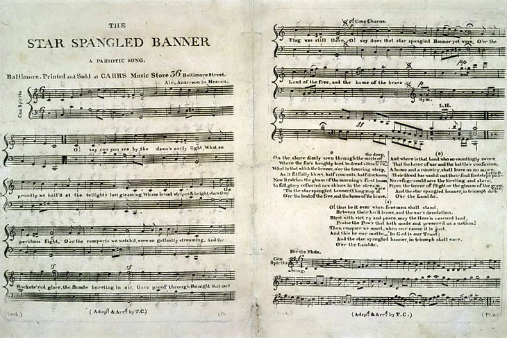 27. Стихи поэта Фрэнсиса Скотта Ки «Звездно-полосатый флаг», написанные в 1812 г. приняты Конгрессом США как текст гимна США.