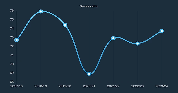 Начнем с ключевого элемента игры вратаря - отражение ударов. Рассмотрим при этом конкретно последний сезон, для более справедливой оценки текущего состояния футболистов.