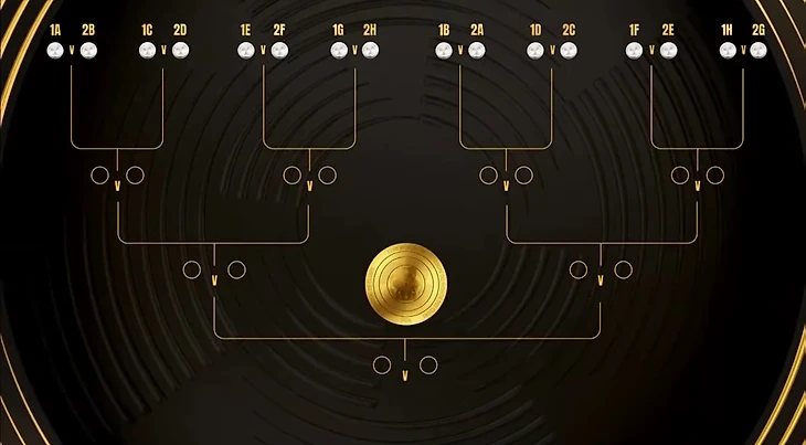 - 32 команды в розыгрыше, 8 групп по 4 команды для начального этапа.