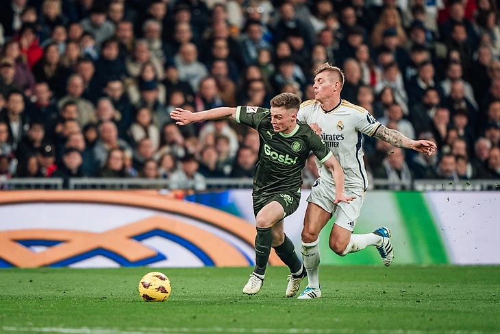 Я думал, в пользу какого матча сделать выбор в просмотре, но изначально во мне доминировала мысль посмотреть матчи параллельно с двух разных устройств. В итоге, я и остановился на этом варианте и не пожалел. Даже не терял нити обоих игр смотря матчи параллельно и как раз именно это стало наглядным примером того как выглядит команда «неожиданный лидер», которая должна становится чемпионом и которая не должна становится им. Наблюдая за этим одновременно и параллельно, это смотрелось очень интересно и наглядно. Начало матча с Реалом, Жирона вроде даже начала довольно бодро, пыталась действовать активно, но будто всё равно не знала, против кого играет. Будто не знала, что Винисиус Джуниор за счёт мастерства и таланта, может сделать гол-красавец почти из ничего. Будто не знала, что у Реала вся команда таких мастеров. И после первого гола на 6-й минуте матча опустила руки, сдалась, начала играть трусливо. Психология не позволила взбодриться, почувствовать себя злым на соперника, сказать самому себе: я вышел, чтобы сегодня выиграть чемпионский матч, а в конце сезона стать чемпионом!