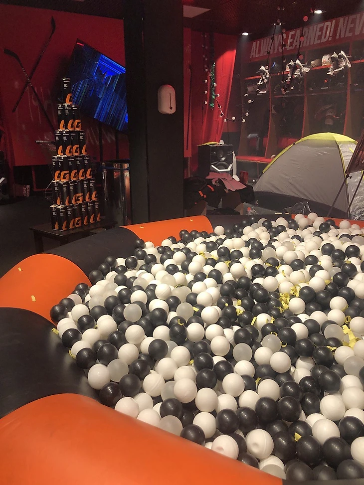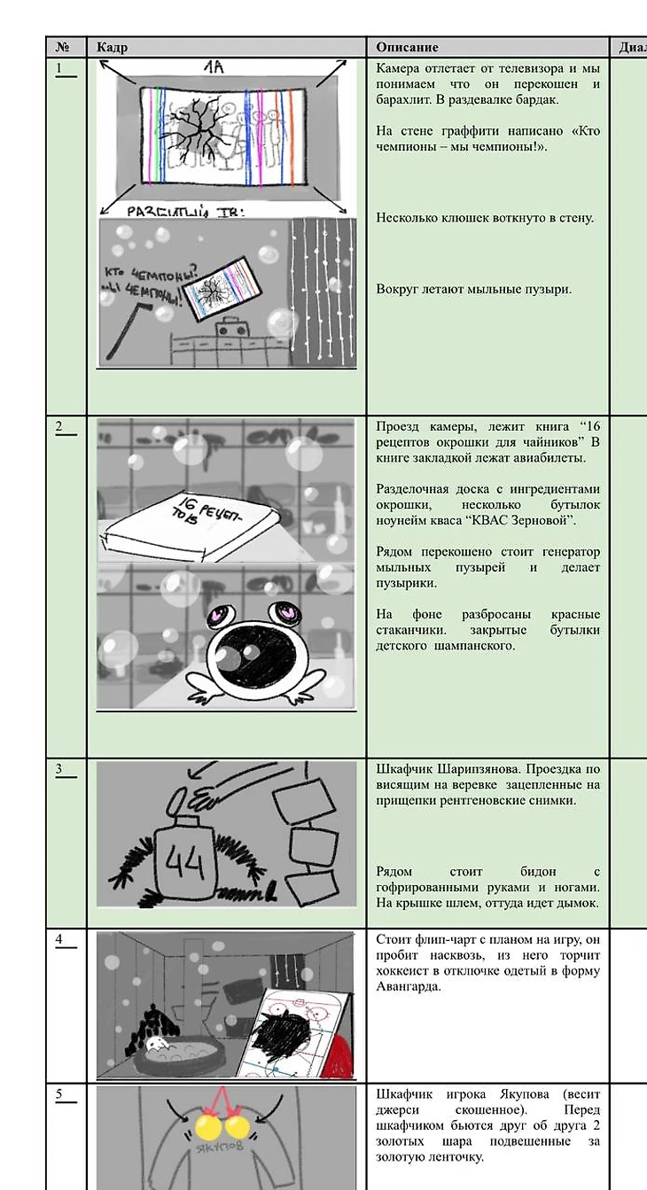 Не пасхалка, а скорее внутряк, поэтому без номера – но разрисовать, сломать и взорвать раздевалку никто бы не дал, поэтому мы построили фальшстену и повесили туда сломанный телевизор. Работа титаническая, хоть в кадре этого можно и не заметить.