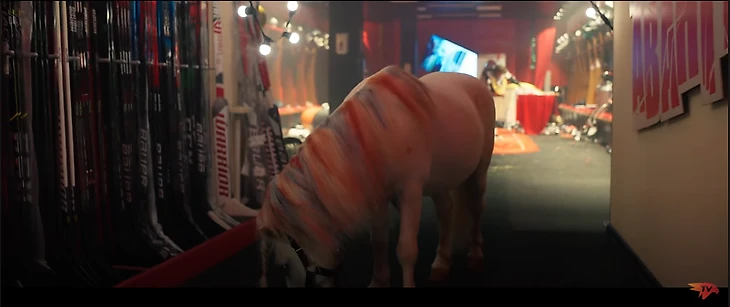 4. Про то, кто занял второе место, вы и так знаете, но конь с медалью в раздевалке не просто ради поверхностной шутки – это тоже отсылка к «Мальчишнику» и тигру Майка Тайсона.
