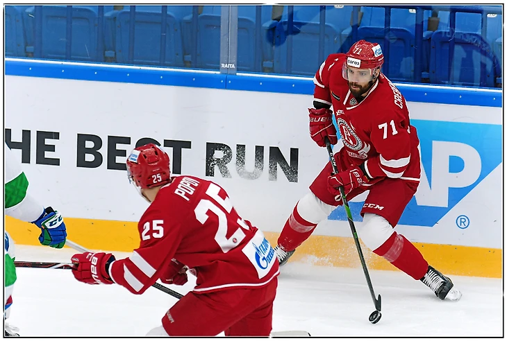 В первом периоде шла абсолютно равная игра. Обе команды были заряжены на борьбу. Старались высоко встречать оппонентов, вступая в отбор сразу после потери шайбы. Да и голевых моментов они создали примерно одинаковое количество.