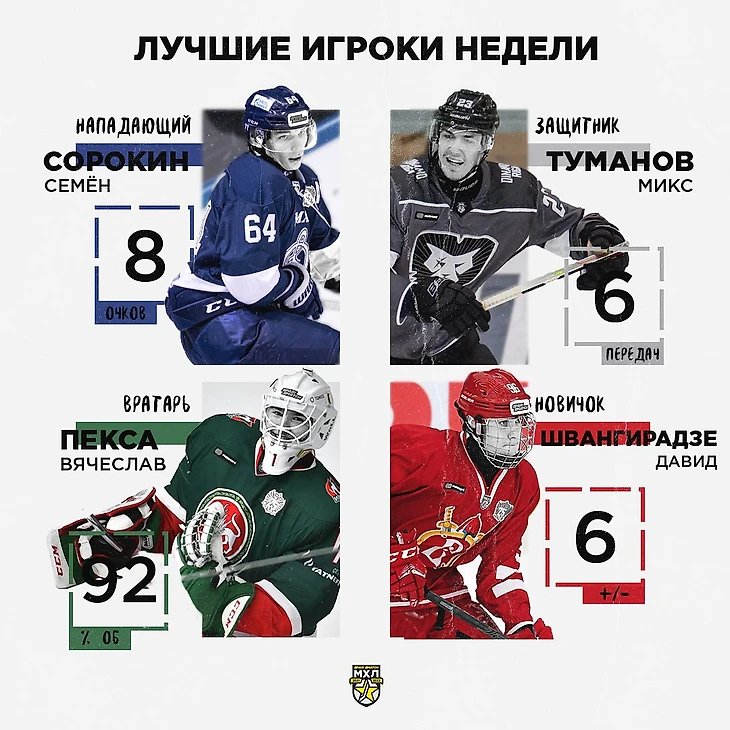 Официальный сайт МХЛ представляет лучших игроков девятой игровой недели Регулярного чемпионата МХЛ сезона 2021/2022.
