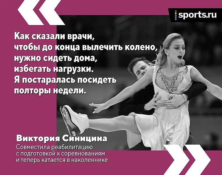 Врачи порекомендовали Виктории избегать нагрузки, пока колено не пройдет совсем. Но она просидела дома только полторы недели: «Старалась совместить реабилитацию с подготовкой, очень хотели подготовиться к соревнованиям. Полностью это не прошло – иногда катаюсь в наколеннике, уверена, к будущим соревнованиям нам удастся подойти в лучшей форме».
