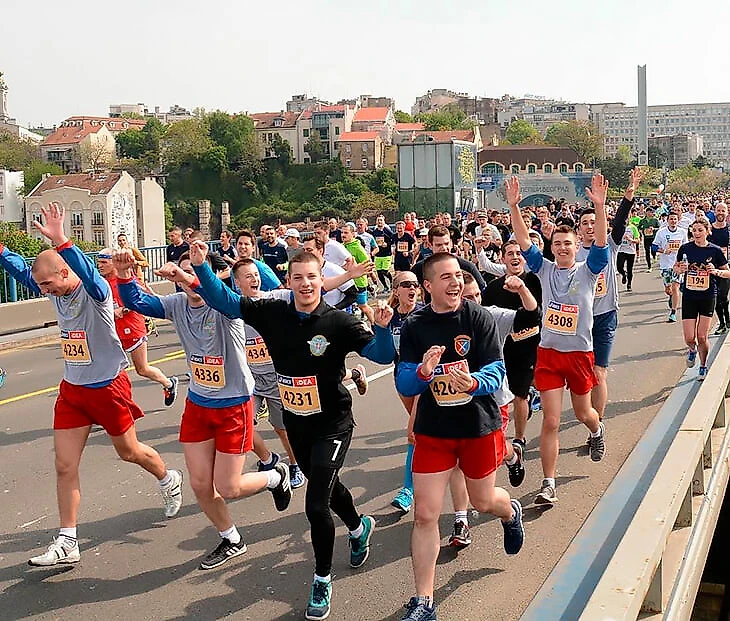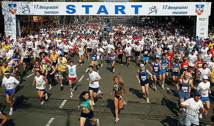Забег проводится с 1988 года – в 2003-м депутаты провозгласили его мероприятием особой важности. Дистанции забега – 5 км, 21,1 и 42,2 км. Марафон стартует в центре города недалеко от здания Народной Скупщины, проходит рядом с Белградской крепостью (памятник культуры особого значения, сооружение которого началось еще до нашей эры) и пересекает вантовый четырехпролетный мост над Адой.