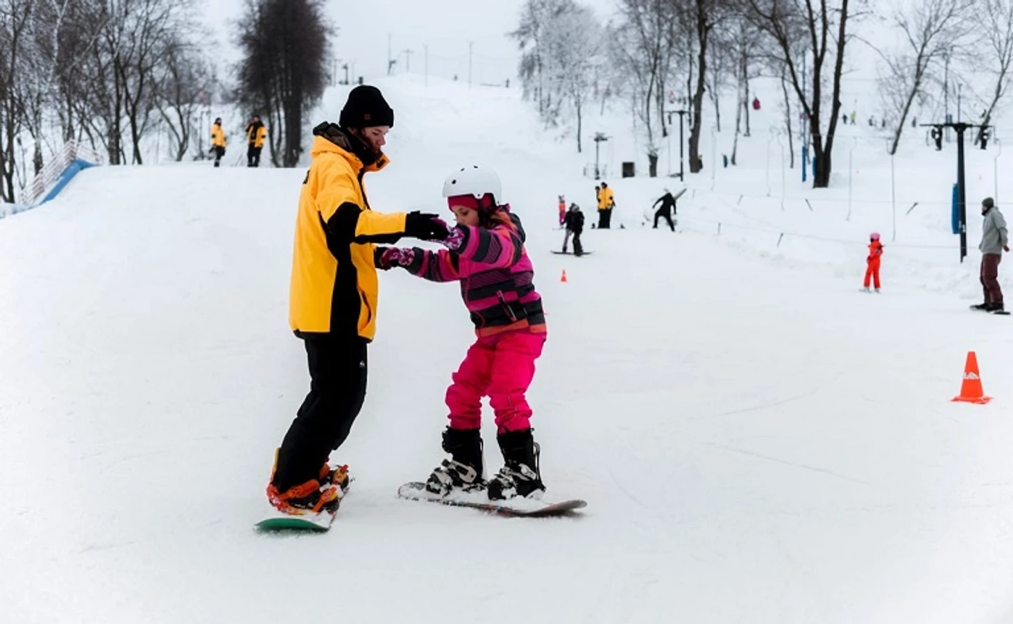 Школа для начинающих и прогрессирующих сноубордистов. Собственный учебный склон. Бесплатный ски-пасс для новичков.
