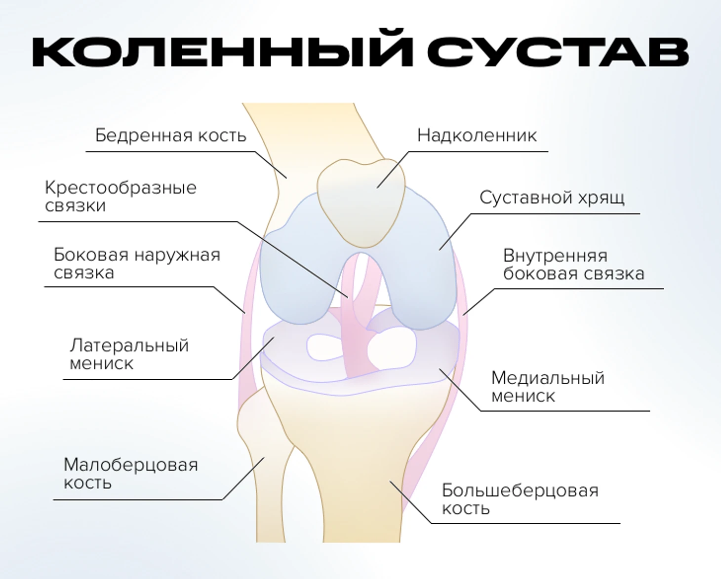 Коленный сустав – самый сложно устроенный сустав в человеческом организме, и связано это с тем, что на колени приходится большая нагрузка: на них опирается практически вся масса тела человека. При ходьбе, приседаниях, подъеме по лестнице, ношении тяжестей колени обременяются ещё сильнее, поэтому природа предусмотрела коленный сустав именно таким: сложным по строению, но максимально приспособленным к нагрузке.