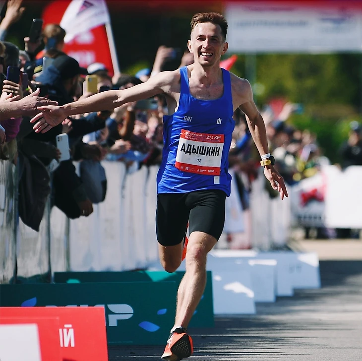 Но вышло все не совсем так, как ожидалось: Адышкин уверенно держал созданный вначале отрыв, и, когда основная группа начала его догонять в конце, соперникам просто не хватило протяженности трассы, чтобы побороться за победу. Павел выиграл Московский полумарафон в стиле Руслана Хорошилова, который завоевал титул чемпиона России по марафону в Сочи, также убежав от основной группы в отрыв.