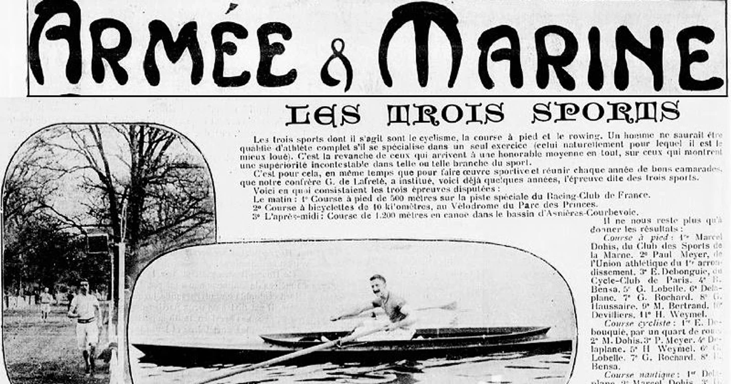 Считается, что триатлон зародился во французском Мёлане, где в 1920-х годах проводились соревнования Les Trois Sports (с франц. – три вида спорта). Дистанция включала в себя забег на 3 км, велогонку на 12 км и заплыв через Марну (река на севере Франции, приток Сены).