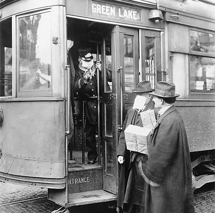 Испанский грипп в 1918-1919 годах поразил около 30% населения Земли. Это была первая пандемия, во время которой маски вошли в обиход: в США и многих странах Европы наладили их массовое производство.