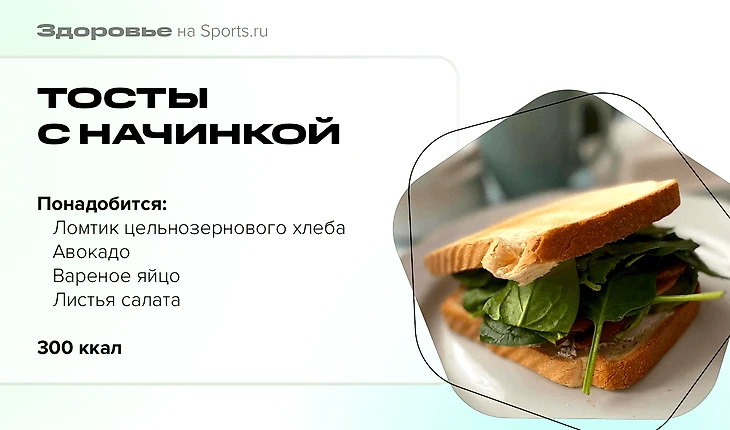Ингредиенты. Ломтик цельнозернового хлеба (можно заменить несладким хлебцем). Для начинки на выбор: авокадо, вареное яйцо, листья салата / вареное яйцо, дольки помидоров черри, зелень / творожный сыр, слабосоленая рыба, листья салата / творожный сыр, вареная курица, зелень.
