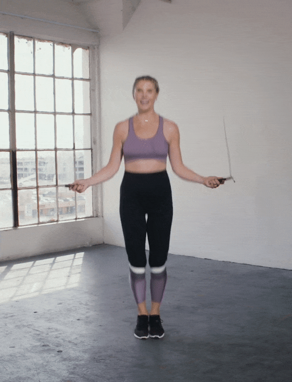 Начните с обычных прыжков в комфортном темпе. Если вы никогда раньше не занимались, выполняйте прыжки в течение 10–30 секунд и постепенно увеличивайте длительность. Выполняйте по 3–4 подхода 3 раза в неделю. По мере освоения базовой техники добавляйте новые элементы для повышения интенсивности тренировки, а также повышайте количество подходов.