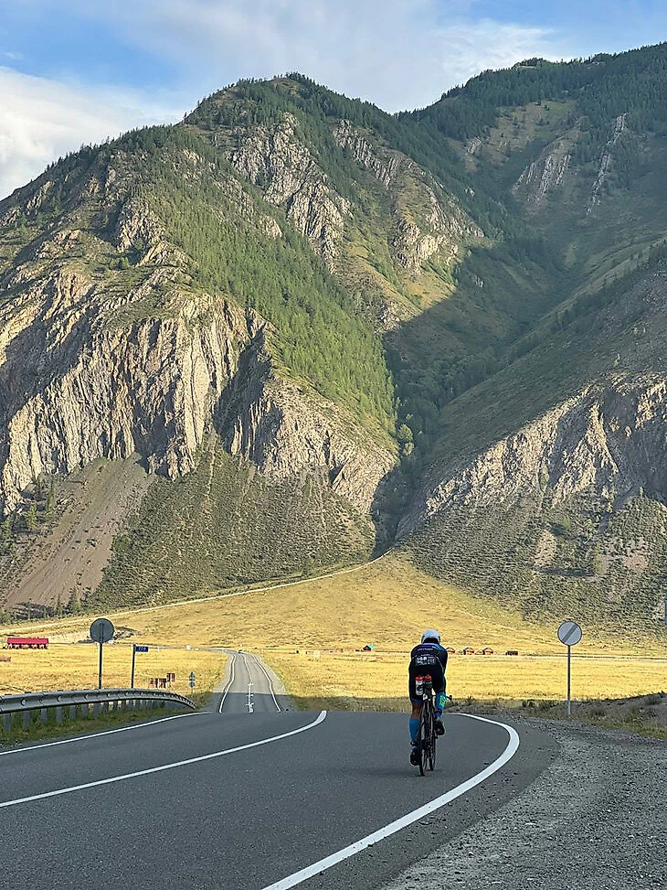 Я стартовала на разделочном велосипеде, с немаленькими звездами. На перевалах с градиентом примерно в 10° (уклон почти 18% – Спортс’‘) приходилось попыхтеть. Ноги безумно горели. Въезжая на Курайский перевал, хотела слезть и идти пешком. Но тогда бы парни припомнили мне: ага, ты пошла пешком! Собравшись с духом, я продолжала ехать. Просто ненадолго переключилась на легкие передачи с большим каденсом, чтобы разогнать молочную кислоту в мышцах.