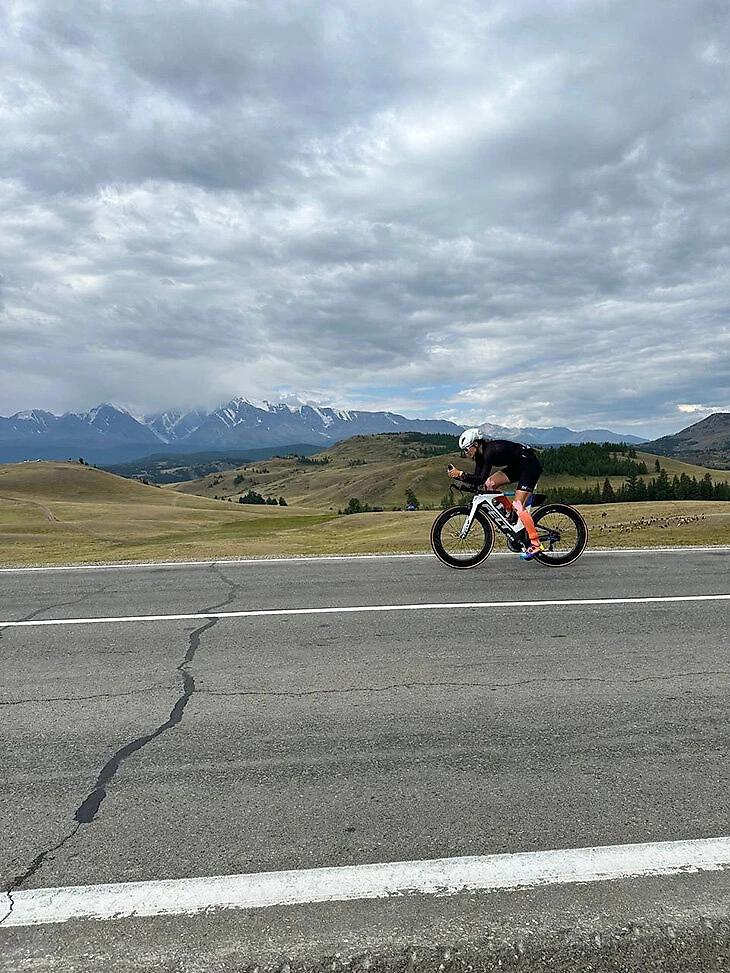Siberman – это ультратриатлон в Хакасии на дистанции 515 км. В первый день участники делают 10 км плавания и 145 км на велосипеде, во второй день – еще один велоэтап протяженностью 276 км (с набором высоты около 1480 м), и в конце проходит трейл на 84 км. Это моя первая гонка, где я сплавала 10 км в составе эстафеты. А на вело- и беговом этапах стала саппортом для своей команды.
