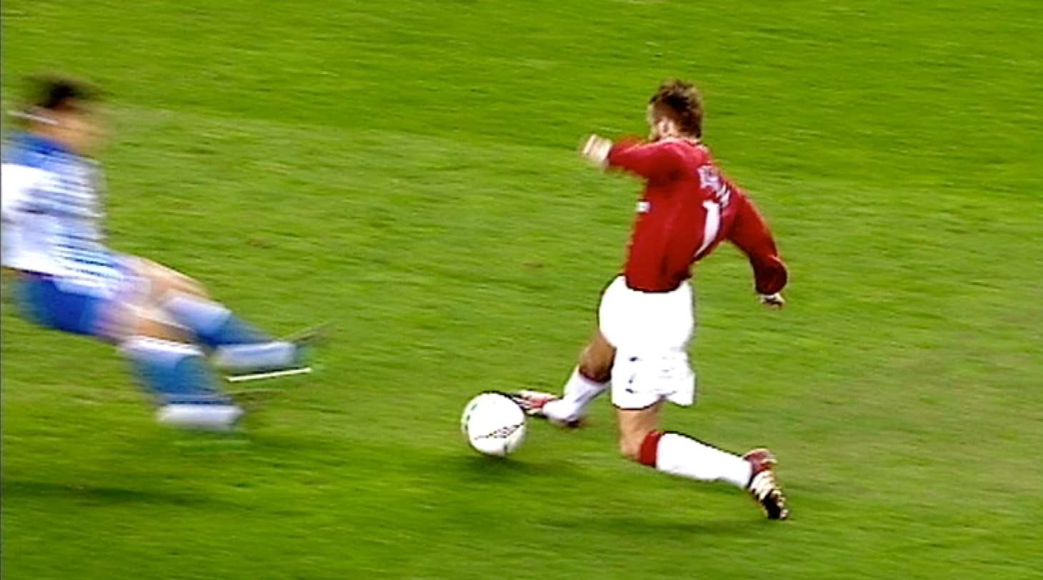 Исключение было сделано лишь для Бекхэма. Будучи мальчиком из Эссекса, который выбрал «Манчестер Юнайтед», он особенно не нравился болельщикам «Вест Хэма». Рядом с Аптон Парком на фонарных столбах висели его портреты. Некоторые из них были подожжены. В последующие четыре года Бекхэм стал невероятно знаменит. Когда следующим летом он гастролировал на Дальнем Востоке с мадридским «Реалом», утверждалось, что «Бекхэм» — самое узнаваемое иностранное слово в Японии после «Кока-Колы». Ветеран журналистики Брайан Глэнвилл писал, что Дэвид и его жена Виктория «жили жизнью монументальной вульгарности», одновременно восхваляя его футбольное мастерство. Именно его последний удар со штрафного в матче с Грецией на Олд Траффорд отправил Англию на Чемпионат мира. Бьелса высоко ценил Бекхэма, проголосовав за него в 2001 году на премии Лучший Игрок Мира. Затем на двадцать первой минуте победного матча «Манчестер Юнайтед» со счетом 3: 2 против «Депортиво Ла-Корунья» в четвертьфинале Лиги чемпионов аргентинский полузащитник Альдо Душер, начавший свою карьеру в «Ньюэллс Олд Бойз», совершил отчаянный выпад двумя ногами вперед.