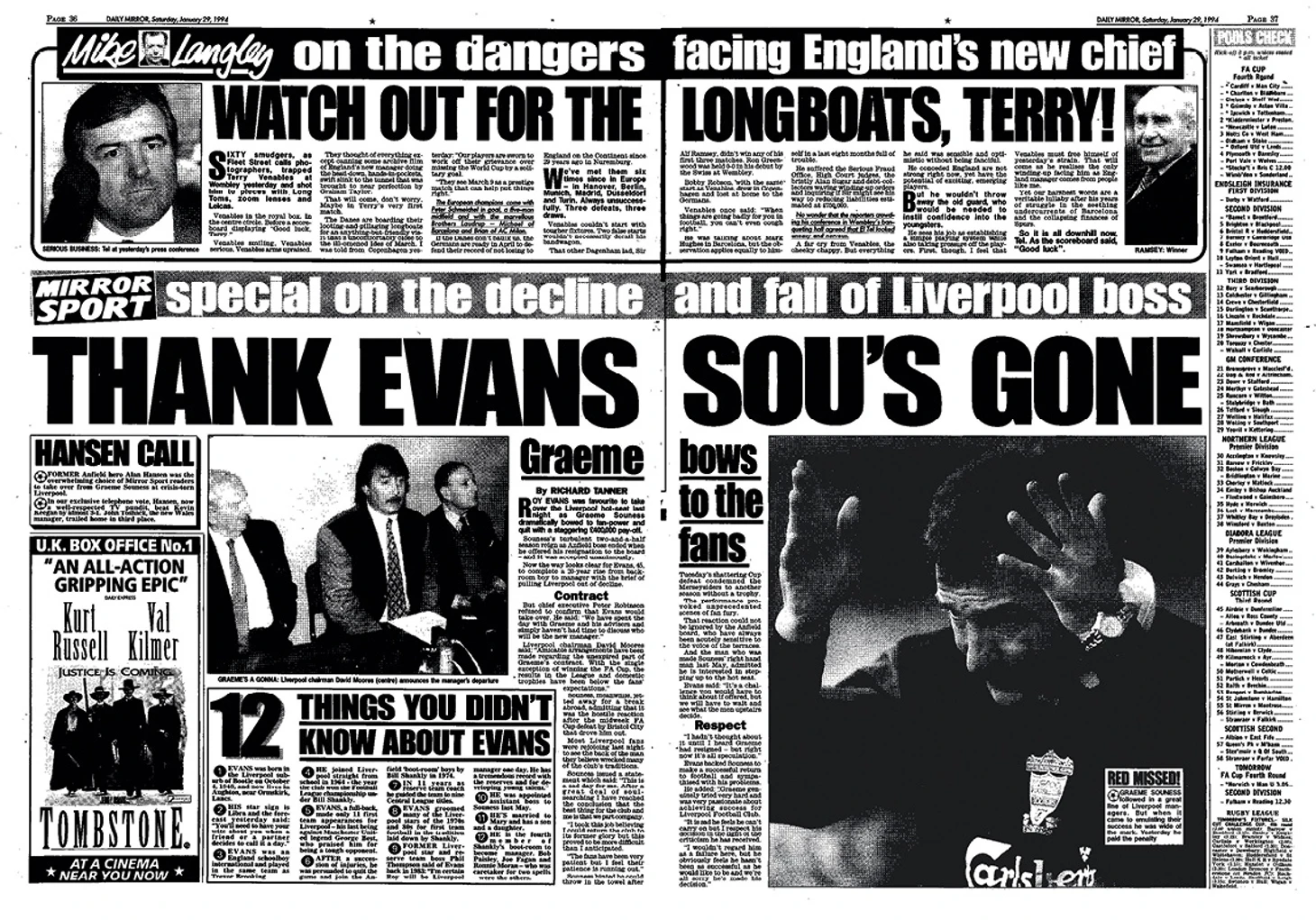 Возможно, «Ливерпуль» и входил в «большую пятерку», сыгравшую важную роль в становлении Премьер-лиги в 1992 году, но их судьба на поле катилась вниз по спирали. Это даже побудило председателя клуба Дэвида Мурса обратиться с посланием к недовольным болельщикам: «Быть на полпути к Премьер-лиге и вне трех главных Кубковых соревнований совершенно неприемлемо. Совет директоров решил сохранять спокойствие, поддержать главного тренера и команду и сделать все возможное, чтобы преодолеть нынешние трудности». Совет директоров решил обратиться в Бутрум, чтобы попытаться восстановить свое состояние, и назначил Роя Эванса помощником главного тренера. Как ценный член Бутрум, Эванс рассматривался как человек, который мог бы стабилизировать корабль и оказать успокаивающее влияние. Примечательно, что совет директоров обратился к традициям после потрясений прошлого года. Как болельщик, я лично думал, что Сунесс должен был уйти после интервью «Сан», но эта договоренность с Эвансом, казалось, олицетворяла нерешительность и отсутствие лидерства, от которых страдал клуб. При председателе Дэвиде Мурсе футбольный клуб «Ливерпуль» был кораблем без руля и без ветрил.