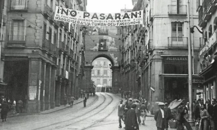 Подумайте о тех символах антифашистской борьбы, которые родились в Мадриде: ¡No pasarán!; знаменитый боевой клич коммунистической организации La Pasionaria: «Лучше умереть стоя, чем жить на коленях»; даже концепция пятой колонны. На вопрос, какая из четырех колонн, наступавших на Мадрид, собиралась захватить столицу в первые месяцы войны, Мола ответил: «Ни одна из них; это сделает пятая колонна, которая находится внутри города». Он был неправ, но как только война была проиграна, Санчес Герра вспомнил, как, выглянув в окно, увидел, как мимо прошла группа молодых людей в синих рубашках фашистской фаланги, распевающих свой гимн Cara al Sol [с исп. — Лицом к солнцу]. «Я был уверен, — отметил он, — что видел, как те же самые люди пели Интернационал всего несколько недель назад».
