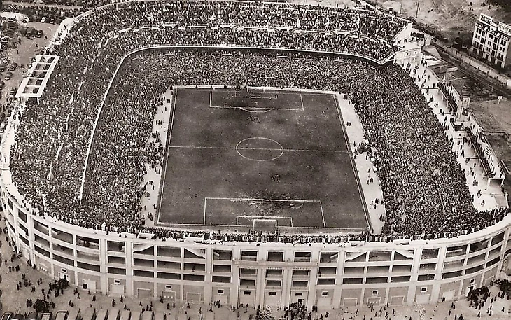 Переполненный стадион — вот чего всегда хотел Бернабеу. Это была навязчивая идея, о которой говорили еще в 1931 году, когда он был директором. Если первое, что сделал Бернабеу, вступив в должность — это послал телеграмму братства в «Барселону», то вторым было изложение повестки дня своего президентства. Пункт первый: новый стадион вместимостью более 100 000 человек. В центре внимания тут была не «Барселона»: в 1947 году Бернабеу рассказывал знакомым, что, если бы они подождали еще год, мадридский «Атлетико» принял бы лидерство, которое было бы невозможно переломить.
