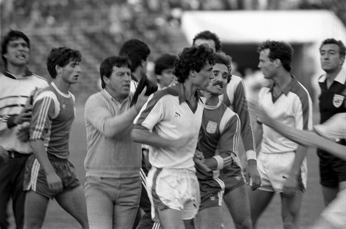 Софийское дерби — это всегда взрывоопасно, и в этот раз все разгорелось через двадцать шесть минут после начала матча, когда Славков получил длинный пас от Радослава Здравкова и точно пробил мимо Бобби Михайлова, голкипера сборной Болгарии, который, как ни странно, продолжал играть за «Рединг» и прославился продвижением бренда по трансплантологии волос. Игроки «Левски-Спартак», полагая, что Славков подыграл себе рукой, были возмущены и яростно протестовали. Телевизионные повторы неубедительны, но предполагают, что игра рукой имела место быть. Судья Аспарух Ясенов засчитал гол, но настроение изменилось, и он потерял контроль над игрой. Подгоняемые ревущей, почти буйной толпой, игроки бросались в каждое единоборство. Илия Войнов добавил второй гол ЦСКА ловким ударом со штрафного через восемь минут после перерыва, а затем, после часа игры, они заработали пенальти — сфолили на том же Войнове.