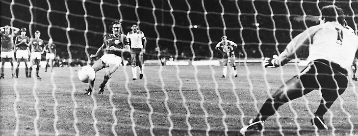 «Я знал, что это может означать для датского футбола, — говорит Симонсен. — Я всегда исполнял пенальти за свои клубы и за сборную Дании. Обычно я никогда не нервничал, но когда я ставил мяч на точку, у меня дрожали руки». Симонсен разбежался. И. Время. Остановилось. После чего он спокойно вколотил его в сетку ворот.