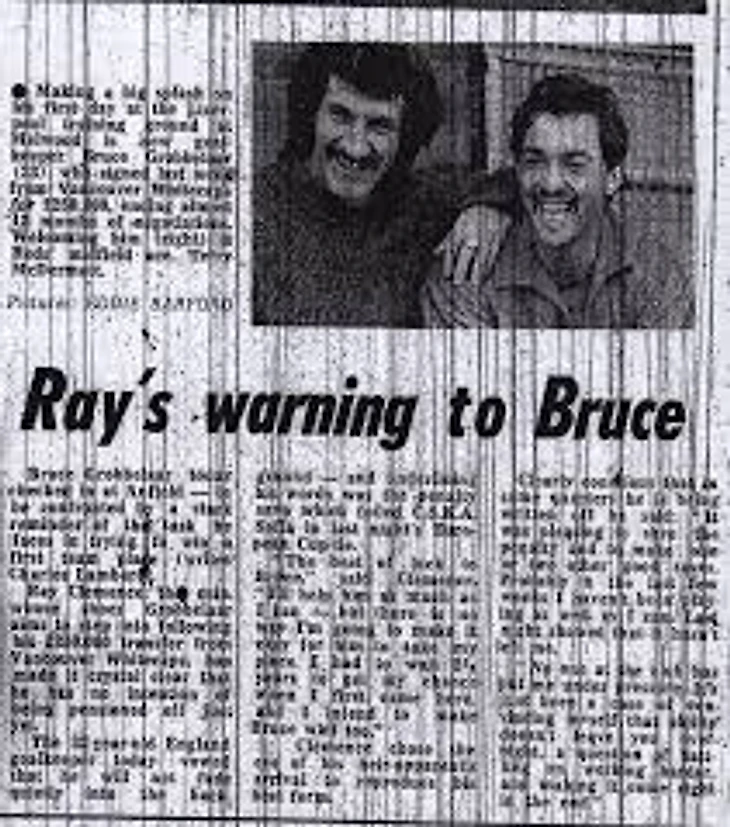 Мистер Тони Уэйтэрс, бывший вратарь сборной Англии и один из сотрудников этого клуба, считает, что Брюс Гроббелар — лучший вратарь, которого он когда-либо видел, и мы уверены, что в нашей стране невозможно найти игрока, равного ему по статусу.