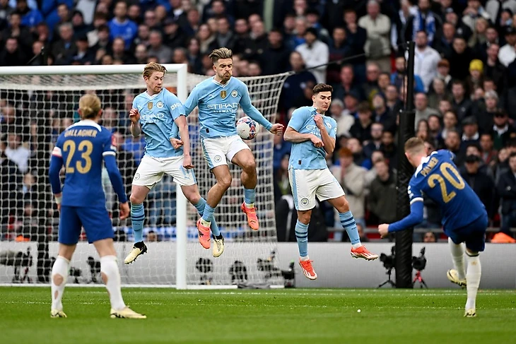 Еще более яркий пример — полуфинал Кубка Англии на «Уэмбли» между «Челси» и «Манчестер Сити». «Челси» заработал штрафной удар, мяч попал в руку стоящему в стенке Джеку Грилишу, которая могла находиться в неестественном положении, а могла и не находиться, и судья Майкл Оливер назначил удар от ворот. Затем ВАР проверял это в течение 60 секунд. В конце концов, ВАР согласился с решением на поле, и был пробит удар от ворот.