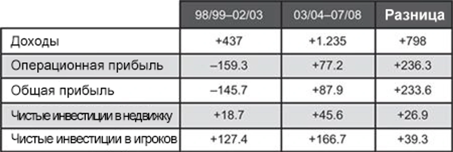 Они задавали разным членам команд разные вопросы. Узнав, какие расходы являются основными, мы выставили контракты на тендер, чтобы найти поставщиков, предлагающих наилучшее соотношение цены и качества. Решение о создании специальной команды, занимающейся сокращением расходов, было логичным и здравым. Сотрудникам отдела, привыкшим к определенным расходам и поставщикам, было бы очень сложно решить, что в них нет необходимости. Нужен был стимул извне, от людей, которые, получив конкретное задание и проведя строгий анализ, смогли бы высказать нейтральную точку зрения. В те дни говорили, что люди из этой команды должны были ходить по коридорам в шлеме и с кинжалом в зубах, как Рэмбо, выискивая ненужные расходы, которые можно сократить. Сочетание более высокого дохода и контроля над расходами позволило клубу начать зарабатывать и продолжать получать прибыль в последующие годы (см. рис. 3.2 и 3.3).