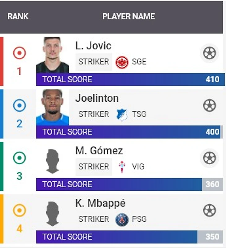 Мбаппе и Жоэлинтон здесь имеют примерно равные показатели. Йович буд-то бы имеет цифровое преимущество над Макси Гомесом, но его сумма Тотал Скор ниже. Поверим алгоритму сайта.