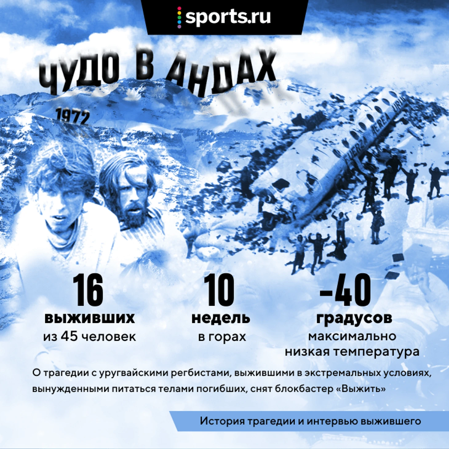 Авиакатастрофа регбистов в Андах: 72 дня на морозе, 16 выживших. Чтобы спастись – они стали людоедами
