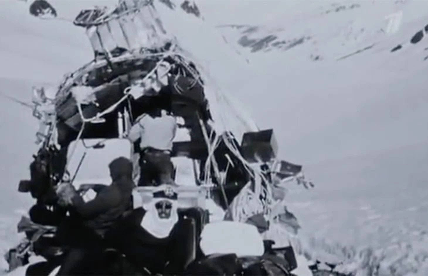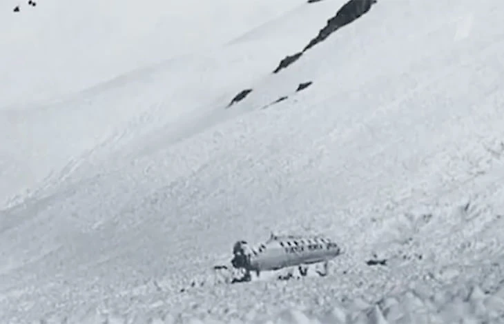 Самолет рухнул на склон и покатился вниз по снегу, периодически меняя траекторию. В этот раз пассажирам повезло: на пути не оказалось скалы, столкновение с которой убило бы всех.