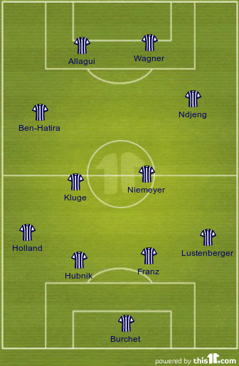 На тридцатой минуте игры Герта вышла вперед! Гол получился очень красивым! Бен-Хатира с фланга отдал пас в центр на линию штрафной, там его ждал Клуге, который одним касанием вывел Вагнера 1 на 1, тот сильным ударом попал точно в угол, от силы мяч аж вылетел из ворот. Хаас выбегал на Вагнера, но сделать все равно ничего не смог!